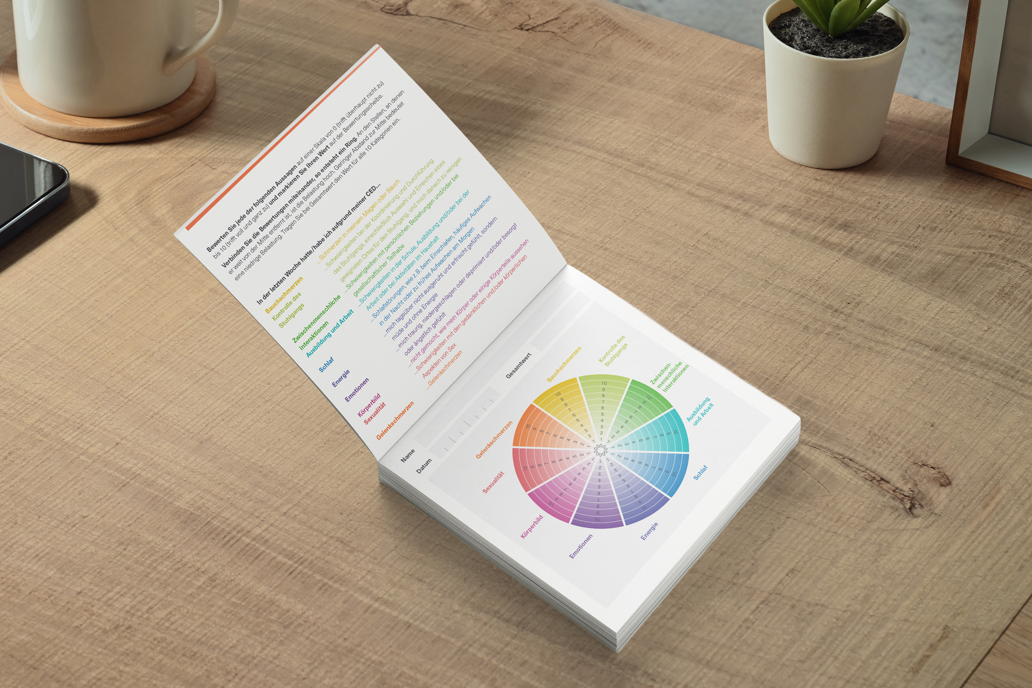 Morbus Crohn und Colitis ulcerosa beeinflussen die Lebensqualität. Mit der CED Disk können Menschen mit CED unkompliziert zum Ausdruck bringen, wie stark und in welchen Lebensbereichen die Erkrankung zur Belastung wird. Das praktische Tool steht jetzt auch digital zur Verfügung und kann mit wenigen Klicks ausgefüllt und ausgewertet werden. So hilft die farbenfrohe Scheibe, die Erkrankung selbst besser einzuschätzen und ihren Verlauf zu verfolgen. Auch im Arztgespräch kann die CED Disk unterstützen.