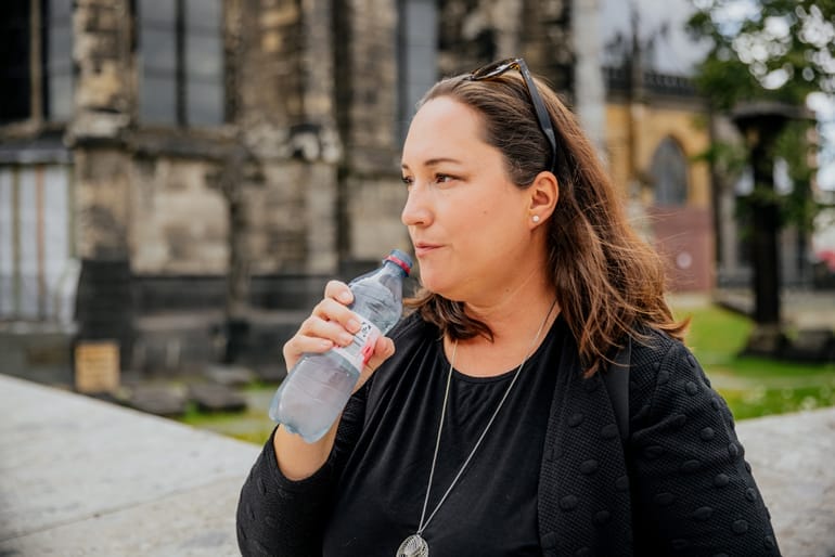 Ob es sich lohnt, das gotische Gotteshaus von innen zu sehen?, fragt Marie-Luise. Der Rundblick von der Aussichtsplattform des Doms, zu der 533 Stufen führen, soll prächtig sein. Soll sie da wirklich hochkraxeln? Oder weiter herumstreunen, lecker essen, Kultur genießen? Pläne hat die Angestellte eines Bezirksamts in Niederösterreich für den Städtetrip keine gemacht. Marie-Luise lässt sich gerne treiben. Biegt spontan ab, wenn ihr etwas gefällt. Genießt, worauf sie Lust hat – ein Halve Hahn im Brauhaus Gaffel, das muss einfach sein. Etwas verblüfft mustert sie die rheinische Spezialität dann doch. Denn mit einem krossen Wiener Backhendl hat der Käsehappen mit Zwiebeln und Roggenbrötchen recht wenig zu tun. An einem blank gescheuerten Holztisch reden wir über die Krankheit, wie es früher war und heute ist. Sie erzählt von Schmerzen, Ängsten, von Therapien und ihrem Leitspruch, nie aufzugeben.